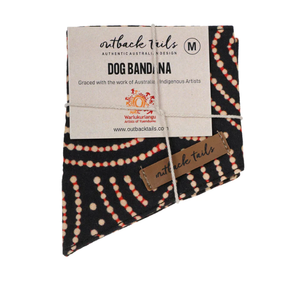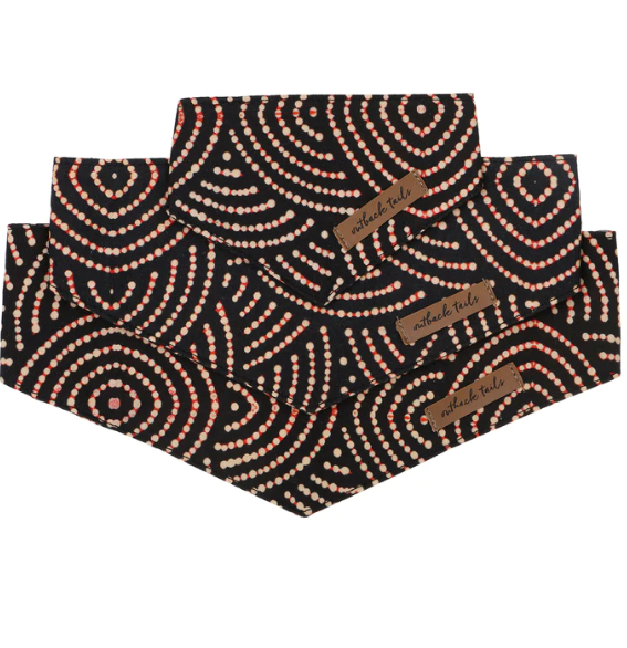 Celebrate Indigenous art & culture with these colourful cotton dog bandanas. Drape one around your dogs neck and brighten up their look for a special outing or an everyday walk around the neighbourhood.
