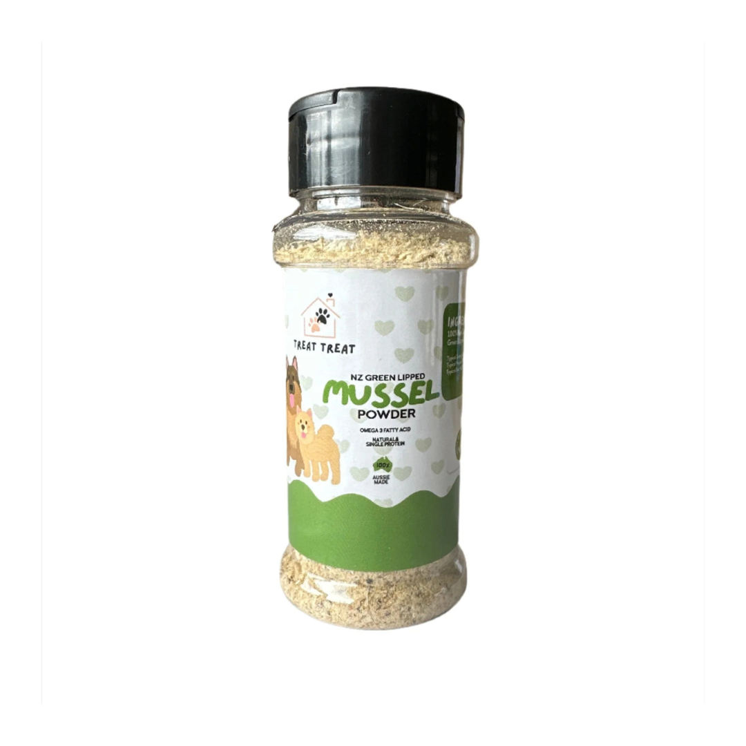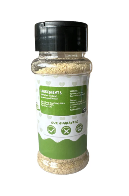 Treat Treats New Zealand Green Lipped Mussel (GLM) Topper, are ground from dehydrated whole mussel. These toppers are a great add-on to your dogs meal.