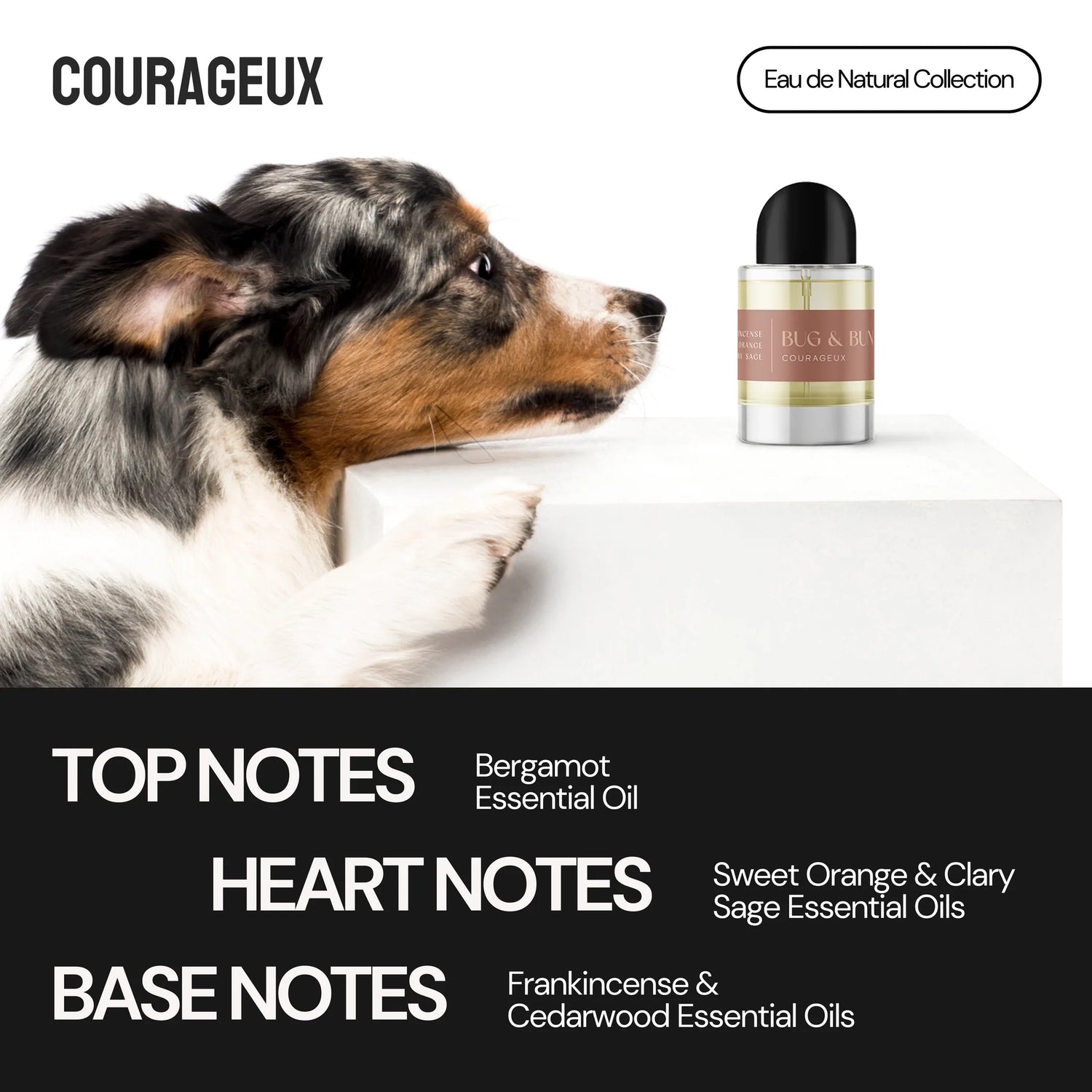 Whether used after bath time for a touch of post-grooming bliss or between washes, Courageux removes dog odour while providing a sense of rejuvenation and energy.